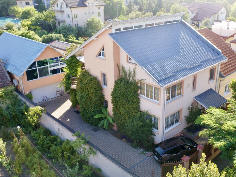 Construită în 2003, vila a fost întreținută impecabil și dispune de finisaje de calitate superioară, sistem de energie verde cu panouri fotovoltaice 11 kW, piscină încălzită, sală de fitness complet utilată și garaj dublu.